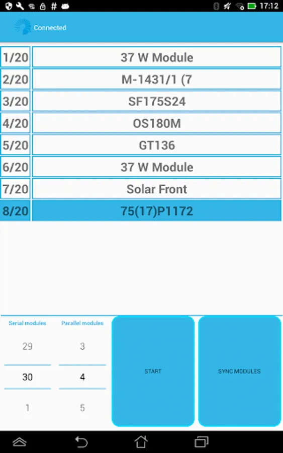The module data can be selected from the huge module Data Base delivered within the EuroLinkPV Android application