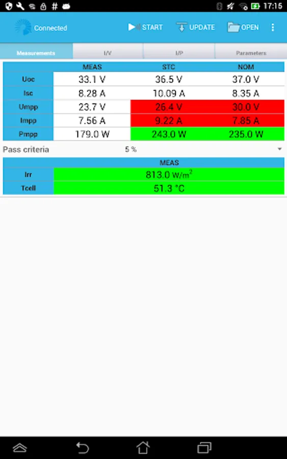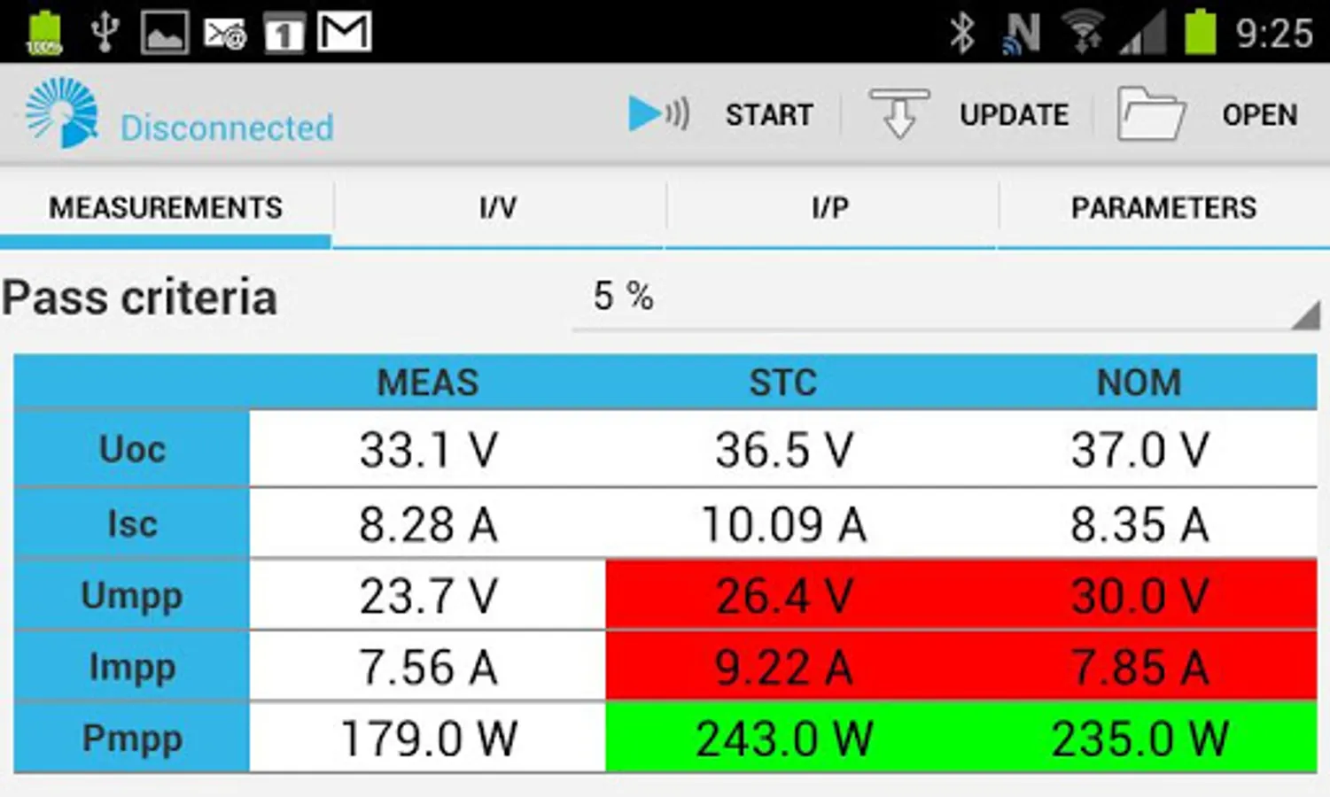 EuroLinkPV Android supports Bluetooth dongle enabling a communication channel between the above listed measuring instruments and a smart phone or a tablet with Android OS.