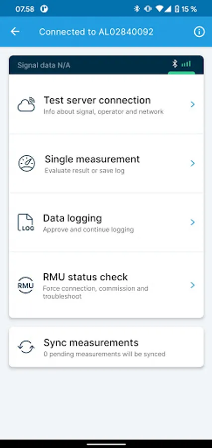 The users can perform a single spot wise measurements and transfer them to web service using sync process. The app can also be used to configure the data loggers i.e. set up of sampling interval and logging mode to either offline or RMU.