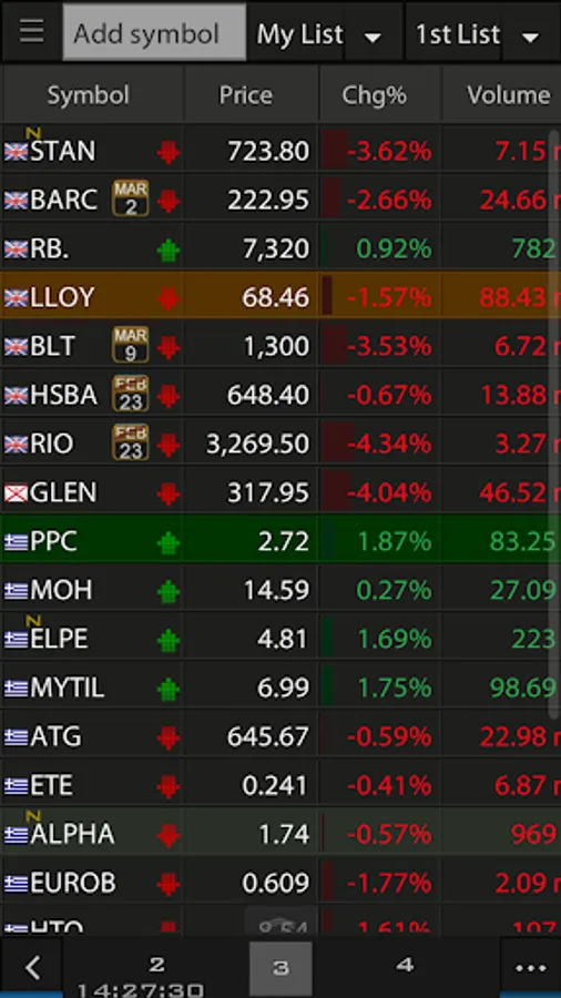 • Alerts based on the price and/or volume and/or change of a symbol.