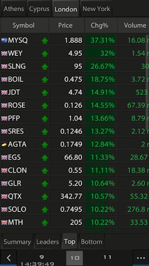 • Dynamic categories (greatest increase, drop, volume, value, volatility, volume for buyers-sellers, lowest bid-ask)