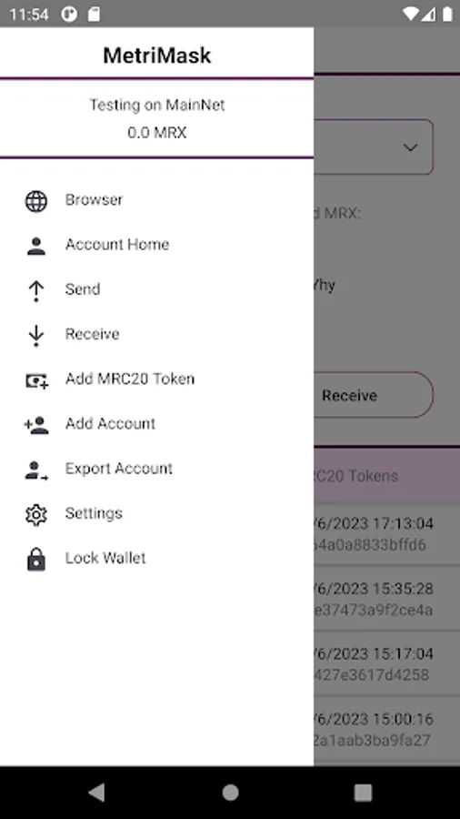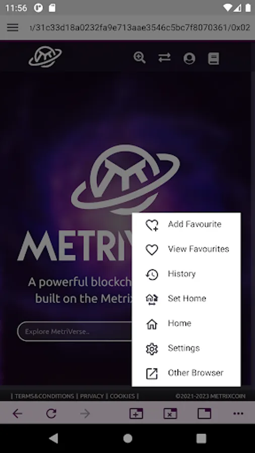 Metrixcoin Web3 wallet with embedded browser. Use to send/receive MRX and MRC20 based tokens.