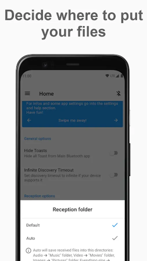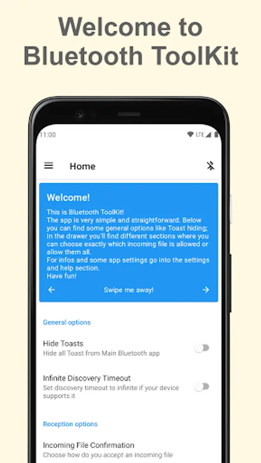 Thanks to Bluetooth ToolKit you can receive any file via bluetooth, choose how to be notified when you receive a file, Materialize different parts forgotten by Google... All this in an adorable and sugary graphic! (now 2.0!)