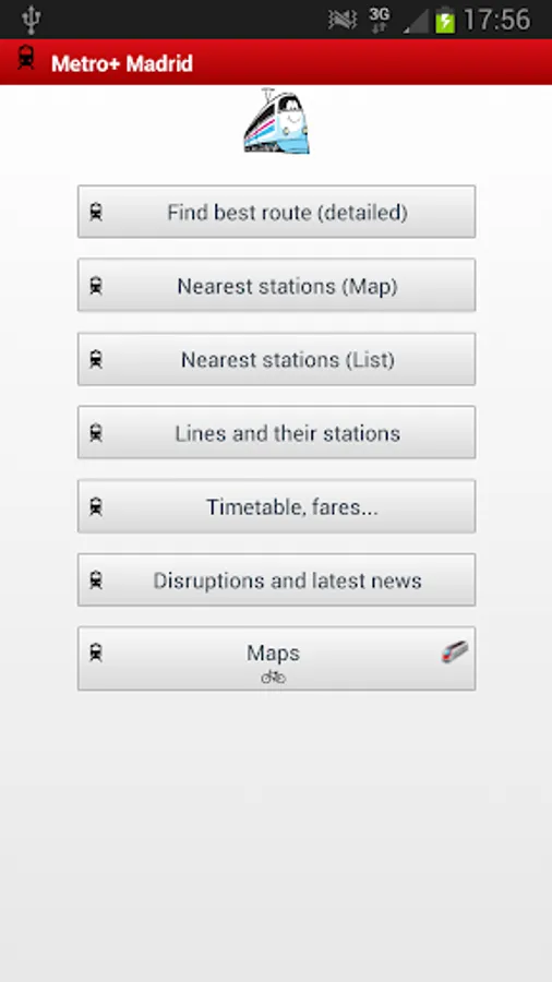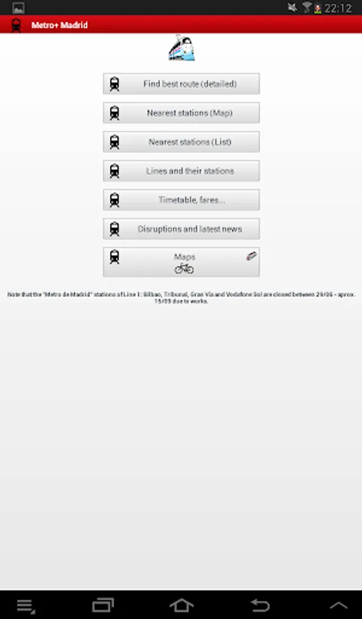 . Official Renfe Cercanías app built-in in Metro+: timetable, best route, disruptions, news... (for Madrid and other spanish cities).