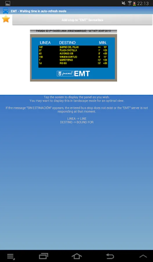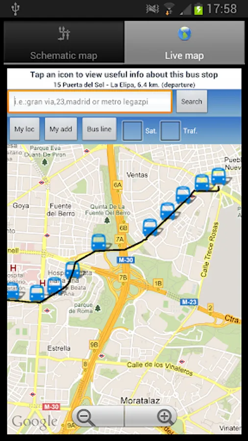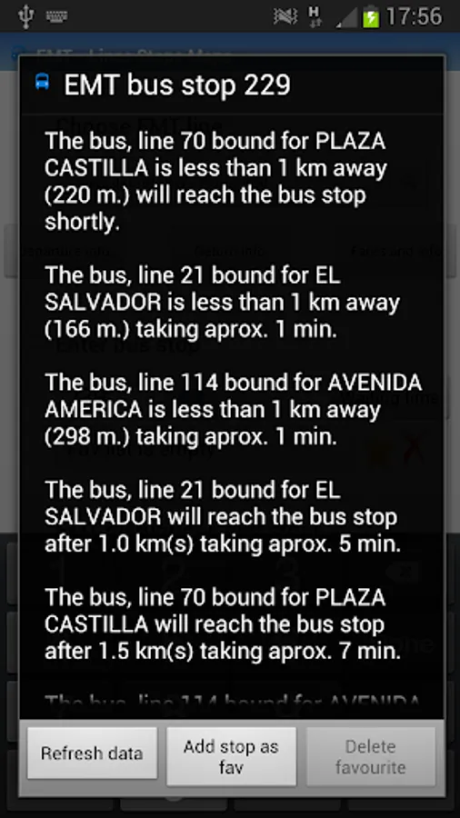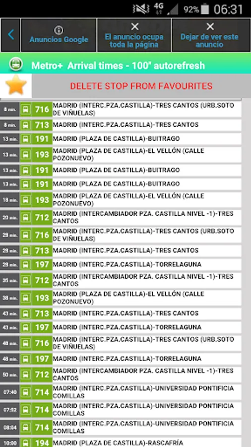 . Waiting times: Provided in real time for all the bus stops (thousands). Just enter the code/number stop and Metro+ will indicate what (line and destination) bus is next that is approaching. You can add favourites, view the picture of the stop, etc... Also you can see the selected stop on a map with traffic status. If you tap on the bus icon, Metro+ shows you the distance between you and the stop. If you enter a postal address or POI, the distance will be between this location and the stop. Optional: Notification of proximity alert when approaching the selected bus stop (100 m).