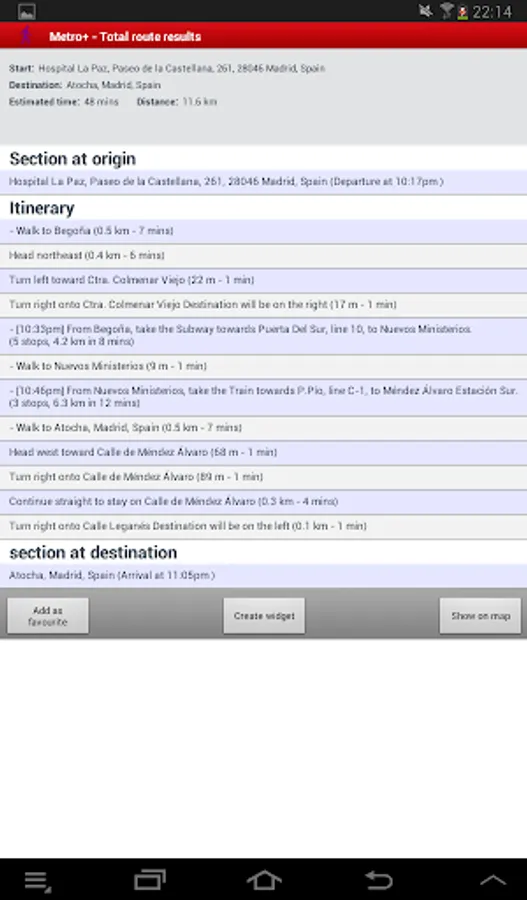 . Best route between two locations taking into account different public transports, waking, etc. You can add favourites and widgets from here. Also you can check the route on a map. Total route is the ultimate way to get the best and fastest route.