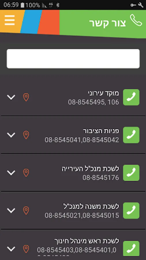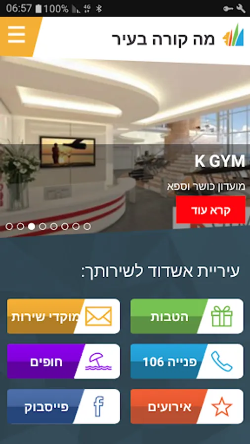 Touch dial app municipal departments, connects the city of Ashdod and the city's Facebook page.