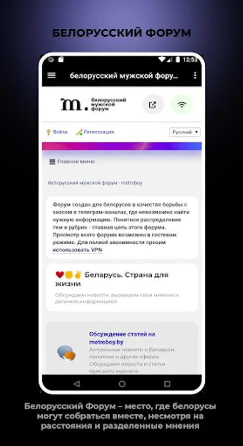 Become a real insider and plunge into the world of information, entertainment and communication with the application "Belarusian men's magazine". Be in the center of all events and always keep your finger on the pulse of Belarus!