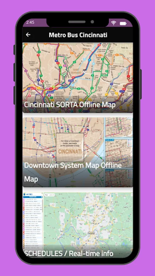 Includes a complete set of maps for the Cincinnati, bus, metro, rail, rail, tram – basically all transit types – from the official sources.