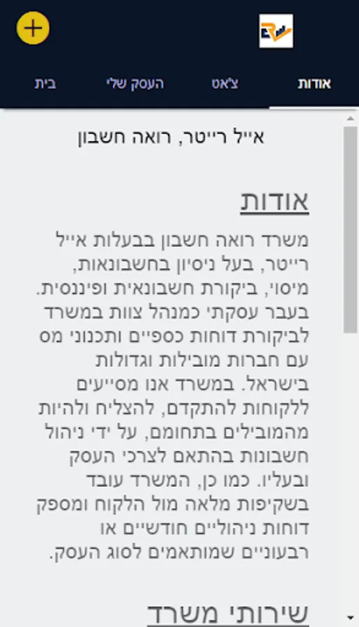 An accounting firm owned by Eyal Reiter, with experience in accounting, taxation, accounting and financial auditing.