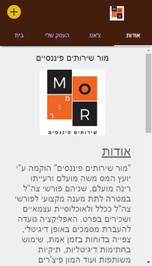 "Mor Financial Services" was established by tax consultant Moshe Moalem and his wife Rina Moalem, both IDF retirees with the aim of providing a professional response to IDF retirees in general and the self-employed and salaried population in particular.