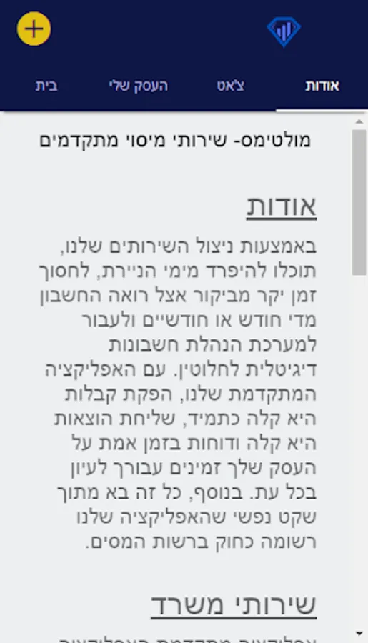 With us, opening an exempt or licensed online dealer is a simple and hassle-free process. If you are ready to get your business off the ground, our team of experts will assist you every step of the way. We will help you fill out all the necessary forms and documents to be submitted to the tax authorities and the National Insurance, while providing support from experienced accountants and tax advisors. Beyond that, you can access advanced tools for managing the business, from generating receipts and current reports to easily submitting an annual report.