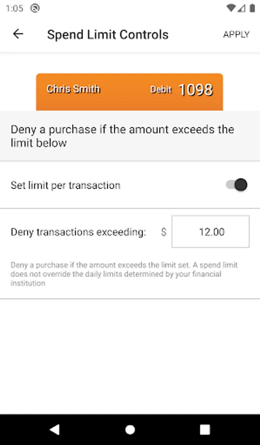 The My Location control can restrict transactions to merchants located within a certain range of your location (using your phone’s GPS); transactions requested outside of the specified range can be declined. The My Region control uses city, state, country or zip code on an expandable interactive map; transactions requested by merchants outside of a specific region can be declined.