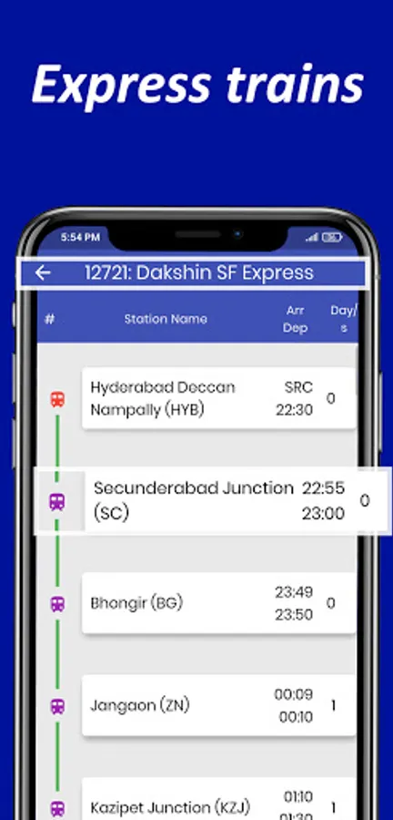 ⌘Hyderabad express trains: Get your hands on the Hyderabad Express trains with Hyderabad local transport app, station to station- time, routes, fares of a different class, connecting trains, distance, and more.