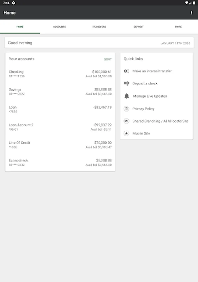 Access your accounts when and where you are 24 hours a day. It’s fast, secure and free access to your accounts anytime, anywhere. You have access to check your balances, and transfer money...while you are on the go!