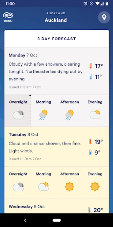- Morning, afternoon, evening and overnight icons for 47 forecast areas, set by our meteorologists, to help you plan your day
