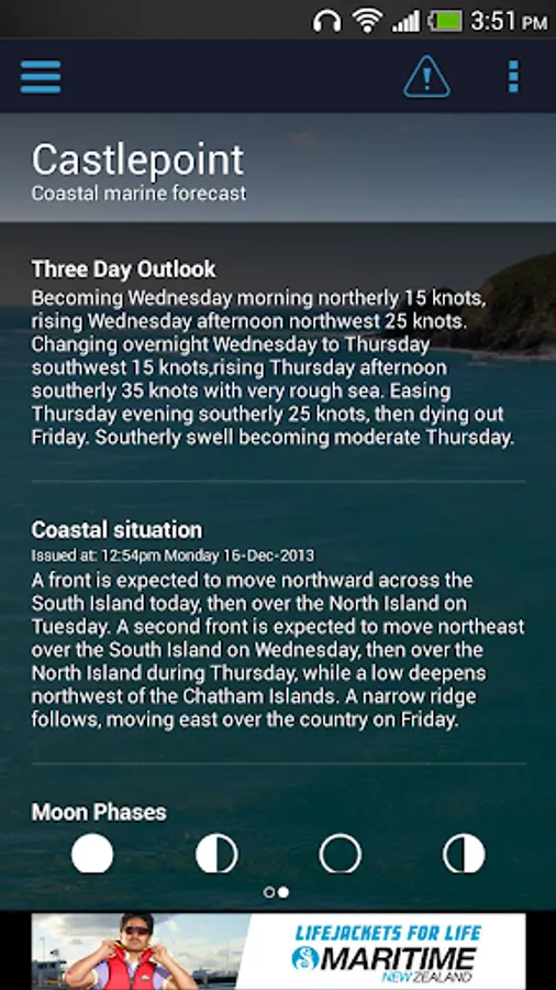 MetService New Zealand marine forecasts are now available in a handy smartphone app. The app is free of charge thanks to sponsorship by Maritime NZ.