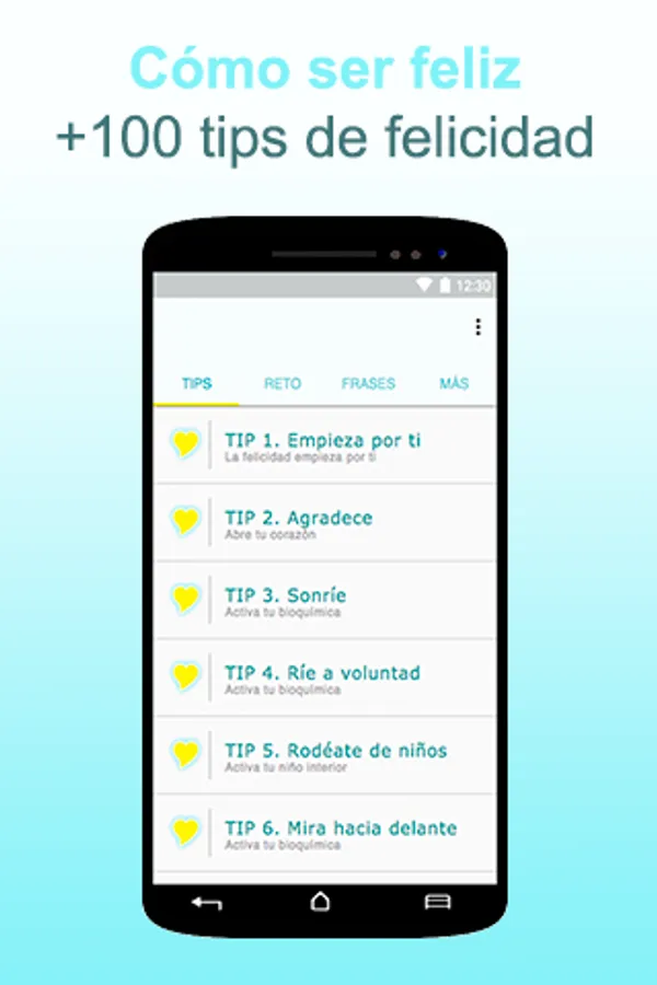 Positive psychology is a relatively new branch of psychology that studies happiness. If you want to know how to be happy, here you have more than 100 tips for happiness based on science, psychology, neuropsychology and recent studies and research. This app is a self-help guide to follow step by step tips to be positive, optimistic, active. pro-active and happy for your personal growth.