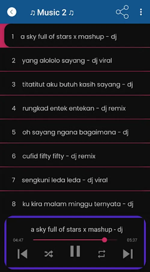 Apart from that, DJ Dum Dee Dum is also equipped with a sophisticated music player feature, which allows users to enjoy their favorite songs with very clear and high quality sound quality. Don't miss the opportunity to enjoy an extraordinary music experience by using this year's Latest Complete Offline DJ Song application.