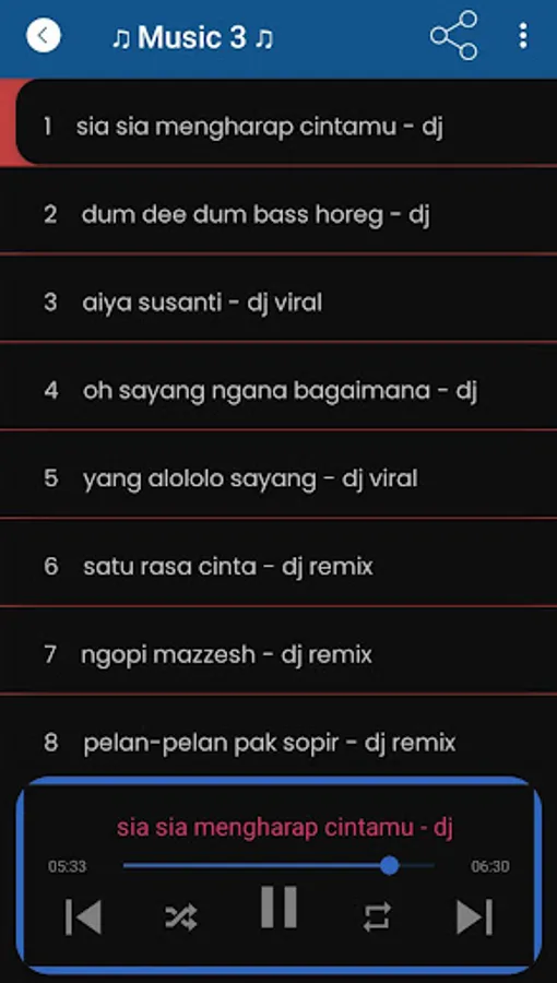 By using the latest complete 2023 viral DJ song application this year, users can find the latest songs from famous DJs such as DJ Mbon Mbon, DJ Opus, DJ Editra Tamba, DJ Mask, Abang DJ, DJ TikTok 2023 and many more. The latest 2023 offline DJ remix song application is also equipped with a sophisticated song search feature, so users can easily find their favorite DJ mix songs.