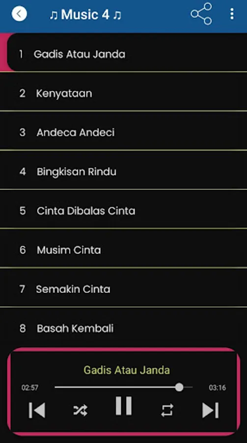 By using this romantic dangdut duet application, users can find selected offline mp3 old dangdut songs. This offline romantic dangdut duet song application is also equipped with a sophisticated complete offline mp3 dangdut song search feature, so users can easily find their memorable dangdut songs.
