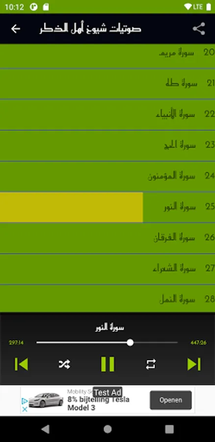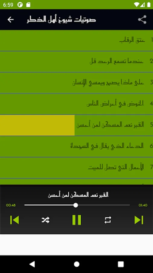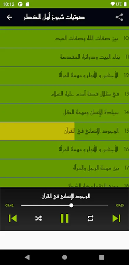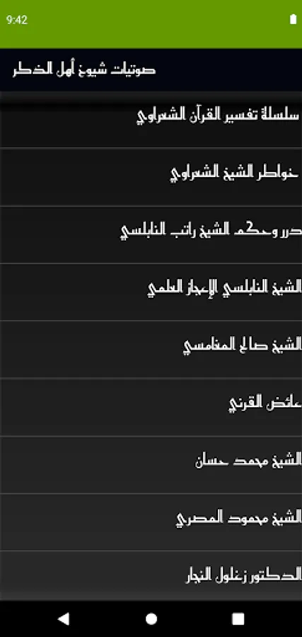 An audio application in the interpretation of the Qur’an by Al-Shaarawi and his thoughts and also contains programs of pearls, wisdom and scientific miracles of Nabulsi and the application also contains the sheikhs of the year Saleh Al-Maghamsi, Zaghloul Al-Najjar, Muhammad Hassan, Ayed Al-Qarni and Sheikh Muhammad Al-Basri