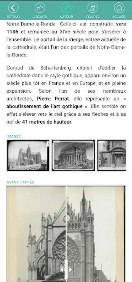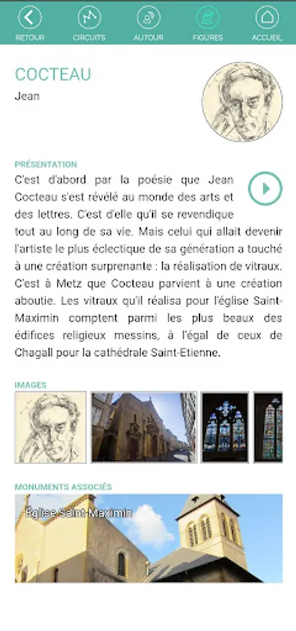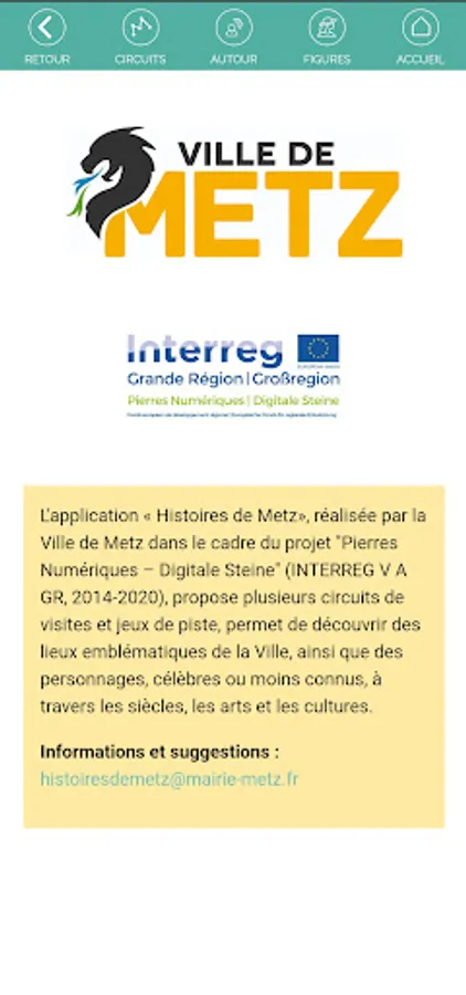 The application "Stories of Metz", produced by the City of Metz in the project "Stones Digital - Digital Steine" (INTERREG VA GR, 2014-2020) offers several tours tours and treasure hunts, reveals emblematic places of the city, as well as characters, famous or less known, through the centuries, the arts and cultures.