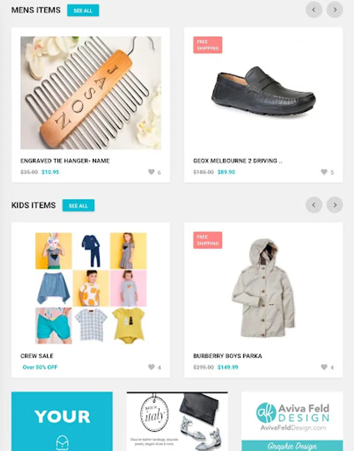- Categories: Women, Men, Kids, Maternity & Home goods.