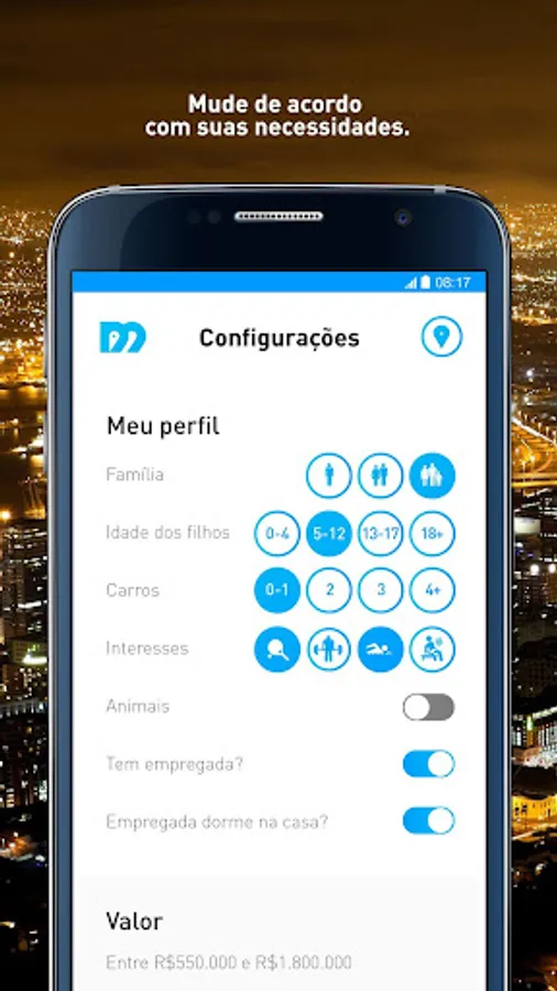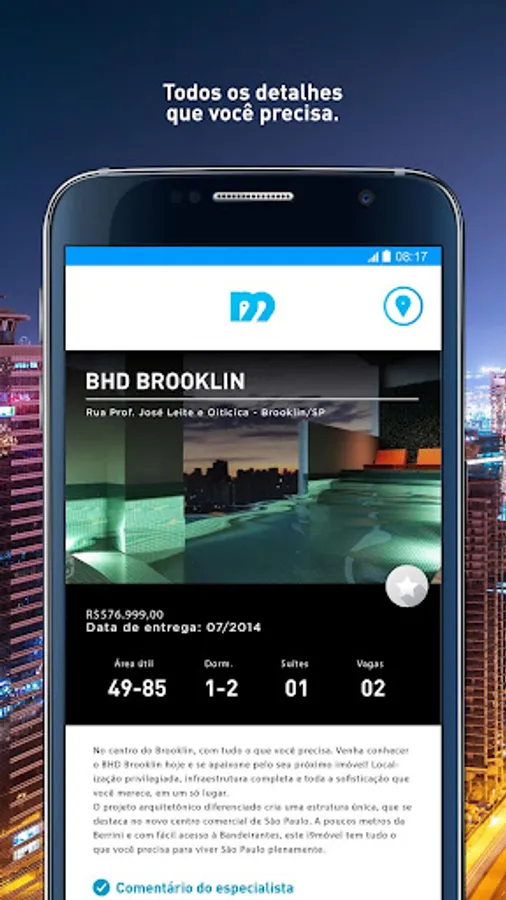 ► Search for purchase personalized profile: Did you know that the buildings are designed based on the profile that future residents have in mind? With the app My Property you talk about you and our experts separate the best releases especially for you!