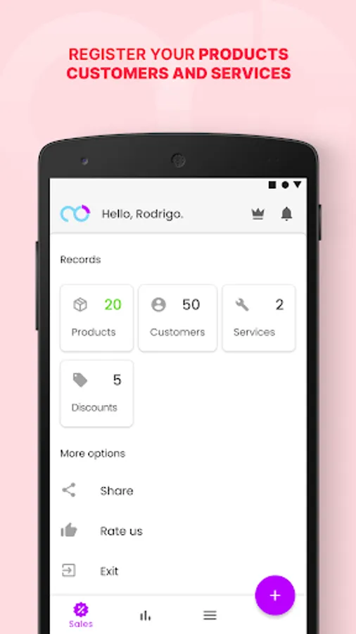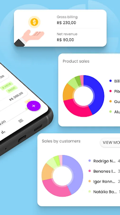 Clean interface, ease of use, amazing graphics. Myne - Sales Manager is Ideal for the individual microentrepreneur (MEI) to manage their sales.