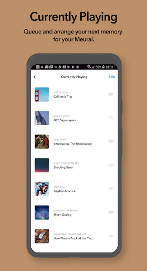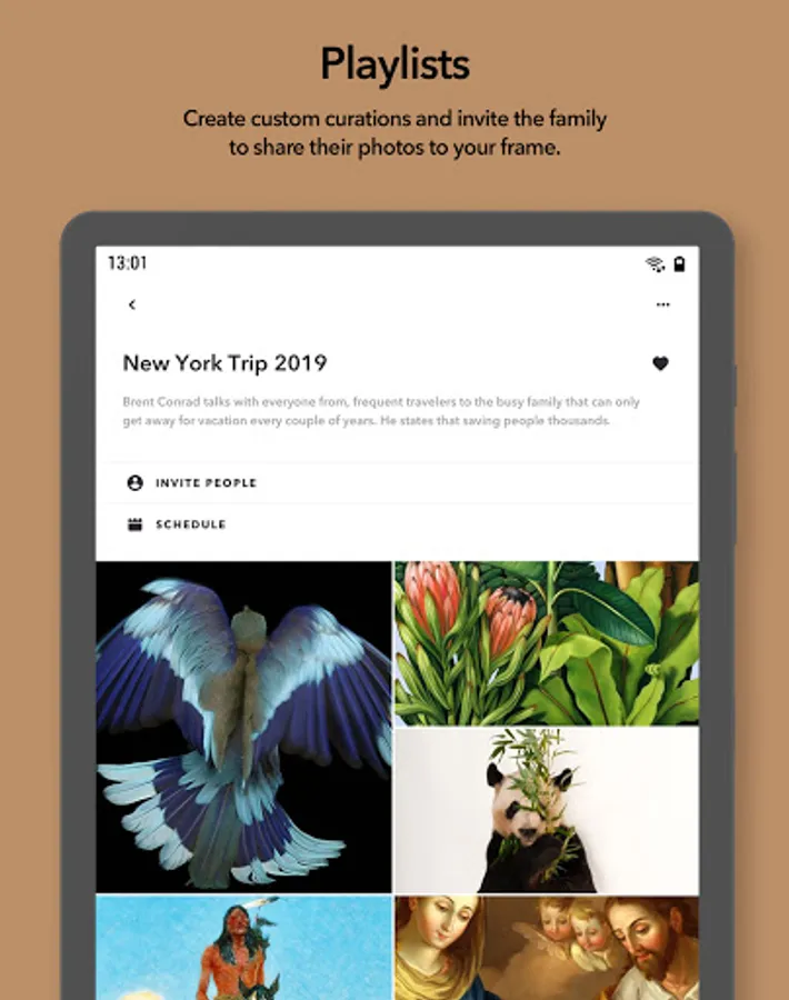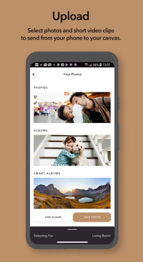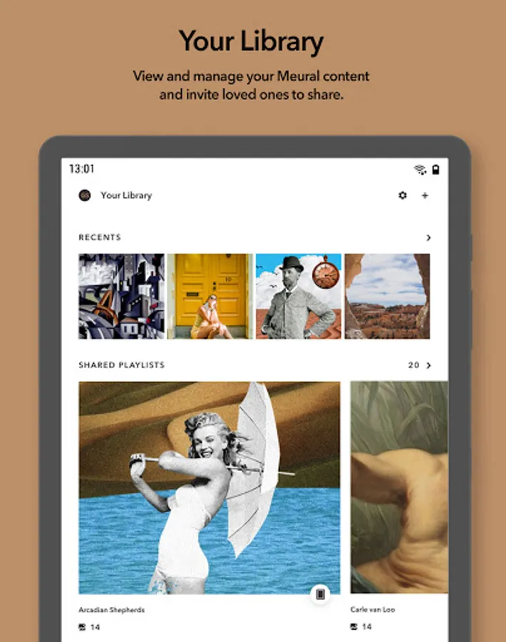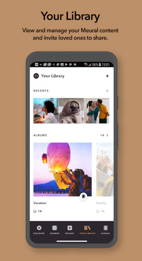 The Meural app lets you instantly share and experience your beautiful photos from your phone to your Meural, from anywhere. Stay connected with loved ones by inviting family and friends to share photos right to your frame.