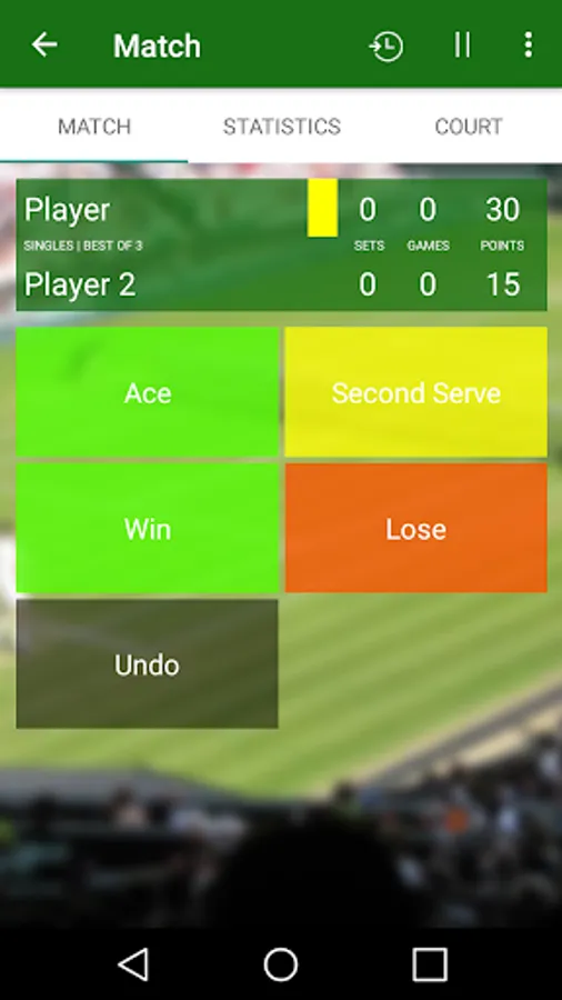 Keep the score of your own tennis matches and analyze them as professionals. All usual statistics are available, such as serve percentages, unforced errors and breakpoint conversion.