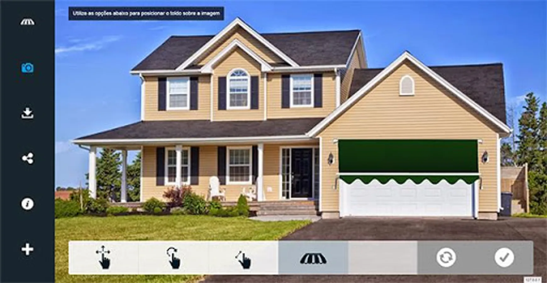 The user can take a picture of the location that will receive the awning and apply a 3D model of awning over the photo, positioning, rotating and adjusting the size until you hear it as he wishes. At the end you can save the image created and share.
