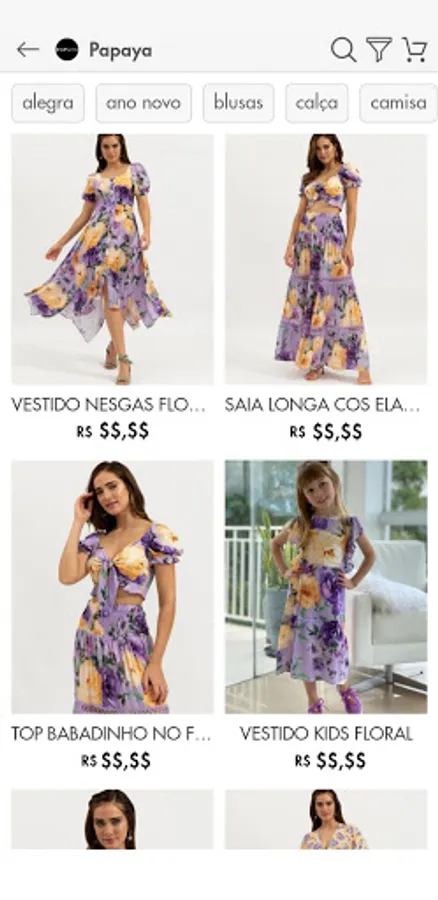 - Filters by segments (eg jeans, women's fashion, accessories, etc);