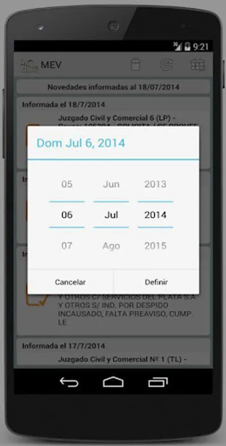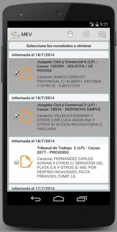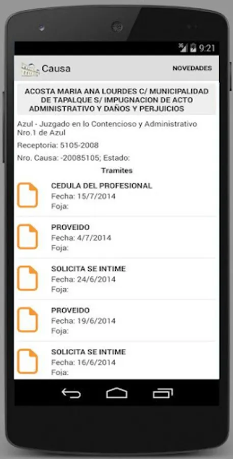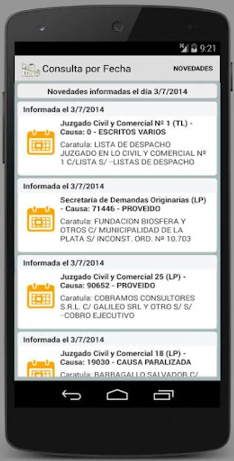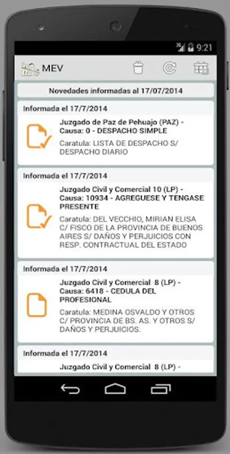 Virtual Table Entries for Android is an application of the Judicial Branch of the Province of Buenos Aires for querying the developments taking place in the causes listed in the Search Sets Bureau of Virtual Inputs.