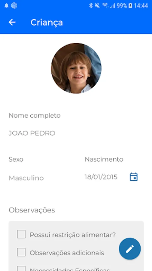 You can register your children and indicate the guardians who can leave them and/or remove them from the Children's Ministry, informing the child's data, such as date of birth and if they are allergic to any product or food.