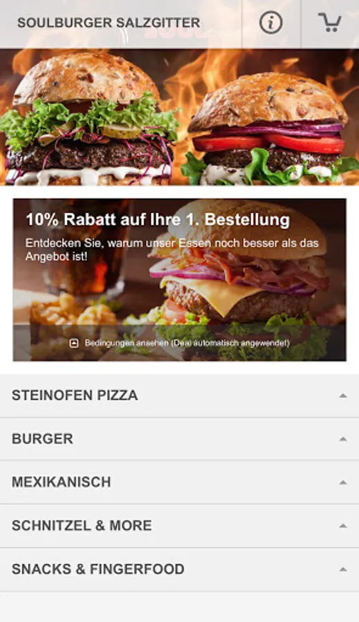 With our SoulBurger Salzgitter app, you can conveniently order the most delicious pizzas, burger schnitzel and much more from the comfort of your own home and have them delivered to your home or order them to be picked up. Test our app now.