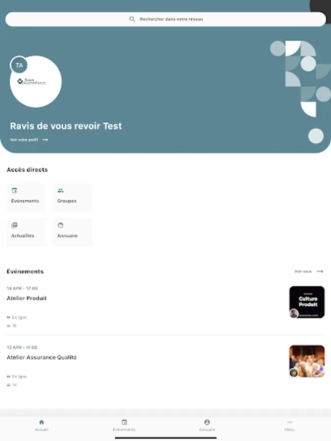 The Team AF application allows you to access all of the network’s features: