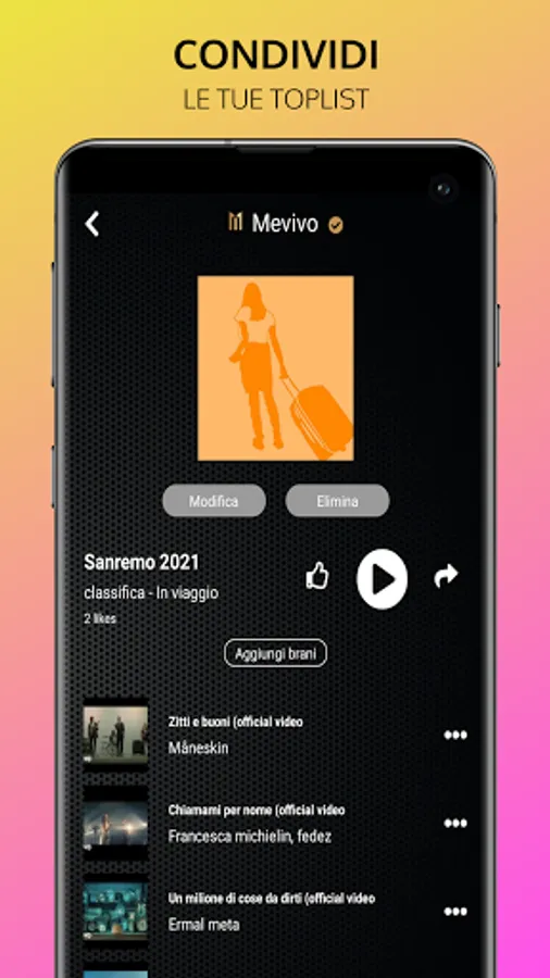 • Listen to toplists according to your mood or music categories: Dance, Pop, Rock, Rap, RnB, Latin, Dubstep, Drum, Electronic, etc.