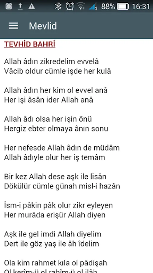 In particular, to provide a convenience for chaplains in mevlid-Sharif application today performed the ceremony you will find reading the whole Qur'aan Bahira to, Unification naval, Veladet naval, Miraj naval, hello naval, Münacaat naval and mevlid prayers are with the Turkish text of.