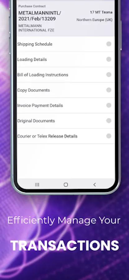 Enhance Business Efficiency - Manage international trade transactions (including reviewing documentation, monitoring logistics and confirming payments) on the go. Boost your business productivity with Metalmann’s advanced business ecosystem, powered by auto-generated documents, business process automation and powerful data analytics