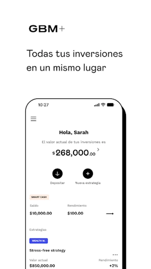 Invest from MXN$100 in the GBM+ app and make your money smarter with specific tools to save, buy and sell shares, and invest in the long term such as:
