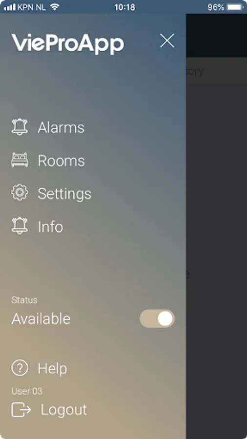 The VieProApp is an alarm App on a smartphone that allows the user to receive alarm messages from the VieDome platform. The VieProApp works with an alarm row. In this row are the alarms in the order they have been received.