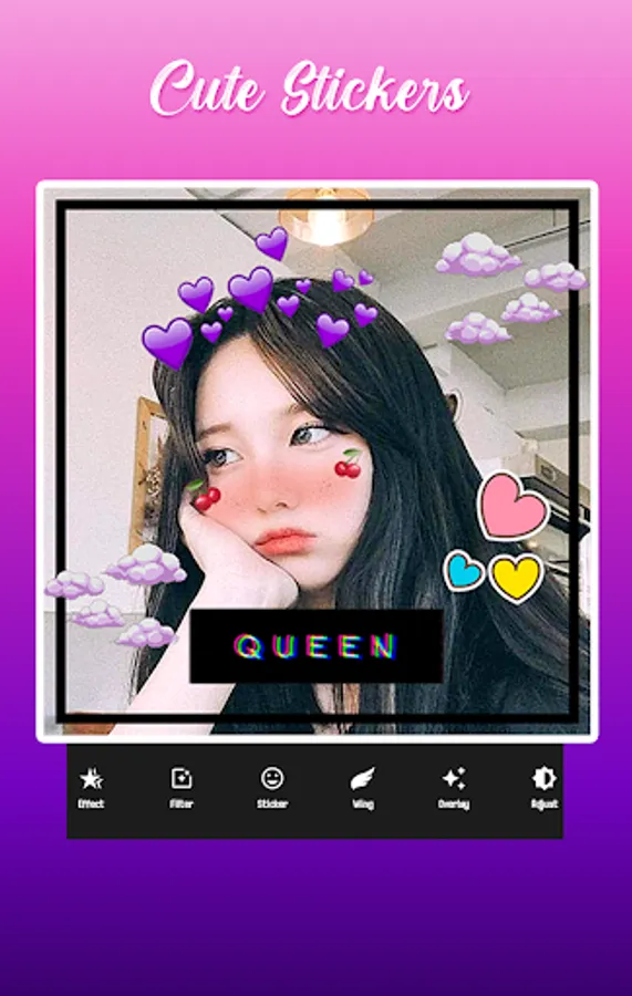 > You can add bunny funny stickers for selfie photos: Heart Crown ð, mindfulness. Cute Stickers and Cat Stickers, Doggy Face, Snapshot, Coachella, Makeup Editor and Emoticons.