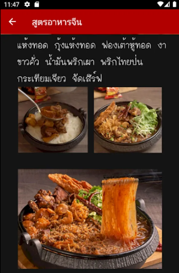 For the food menu, Chinese food is the food of the Chinese people. chinese food culture spread all over the world Popular Chinese food. Chinese recipes are simple dishes that can be made easily at home. Boiled menus, stir-fry menus, curry menus, fried menus, which are no different from Thai recipes and how to make them, do not need to use the Internet. Chinese food menu There are a variety of ingredients such as pork menu, mushroom menu, duck menu, chicken menu, fish menu, shrimp menu, squid menu, for those who love Chinese food, which is a recipe without internet. that includes up to 50 menus You can follow the steps together with Chinese recipes without internet, along with delicious tips from the original.