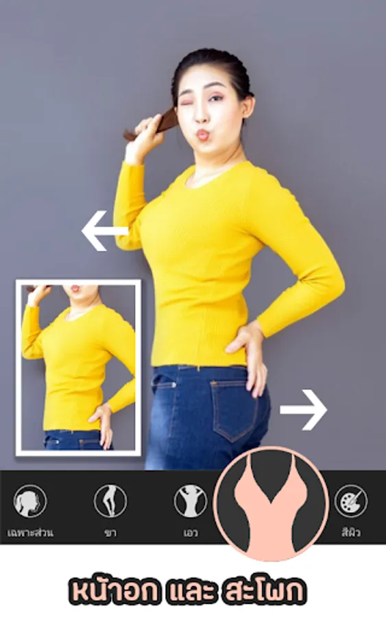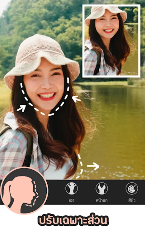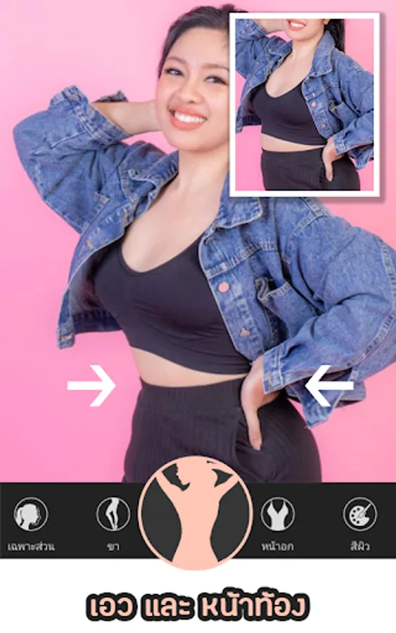 Applications for squeezing shape, stretching legs is an app that adjusts the shape. Instantly create a beautiful figure with just a few taps. Whether it's increasing the chest, increasing the hips, reducing the waist, tightening the slender face, or adjusting the figure to stretch the legs, increase the height with long legs to adjust the stretch. as required Create a slim figure, it can be done comfortably. or will add specific adjustments by face squeezing makeup and skin color retouching can do You can share your pictures to various social media