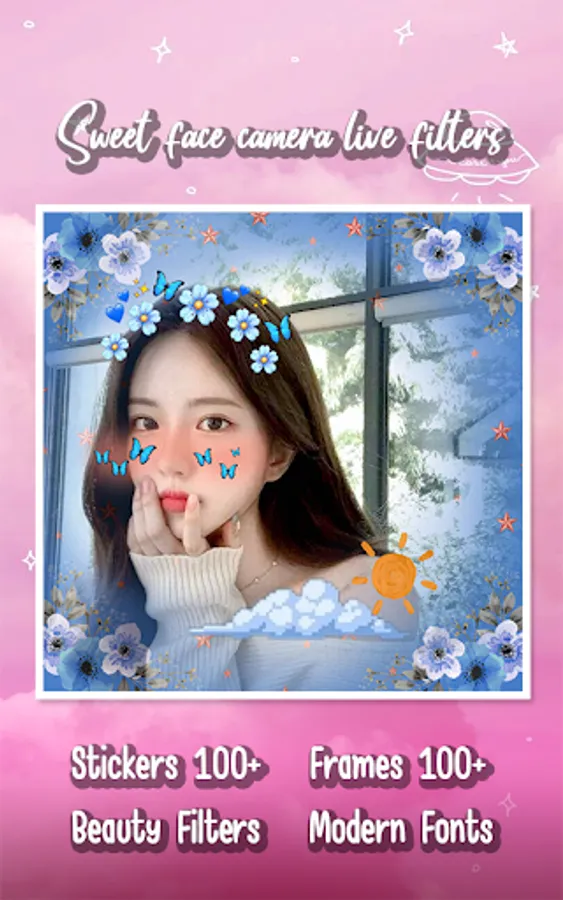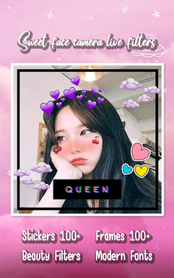 >>This is Sweet Face Camera app make your photo to look cute girl with hundred of heart crown effect, flower crown, cat stickers... and a lot of cute filter!