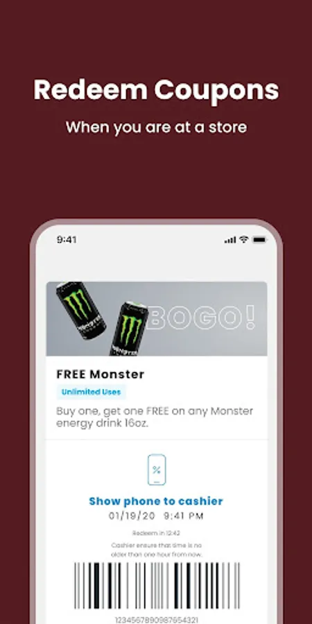 Simply tap the orange redeem button and show your phone at purchase to redeem your coupons.