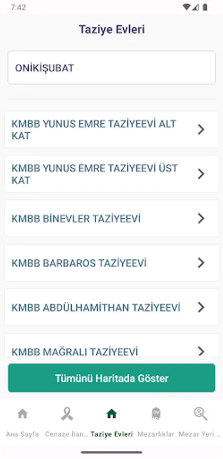 In times of pain, condolence houses are an important gathering point for families and loved ones. The application provides the location and contact information of the condolence houses to the users. It is easy to locate the condolence houses on the map and give directions. In addition, condolence hours and other important information in condolence houses are shared on the application. This feature allows users to more easily manage their condolence processes in painful times.
