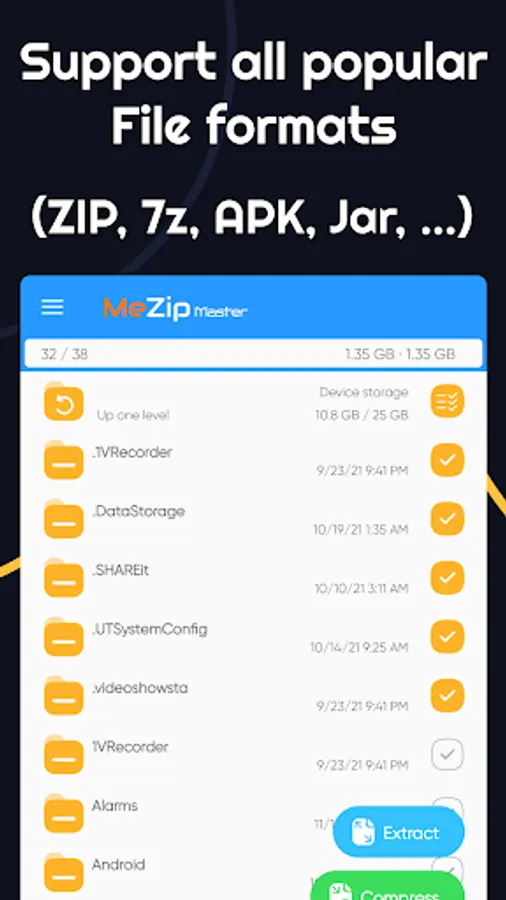 🏆️ RAR & ZIP Compressor/Extractor is a file compressor app to compress, decompress files & file manager RAR ZIP is the ideal option for Android when you need to extract and compress zip files, serving as a top-notch zip file opener. 🏆️